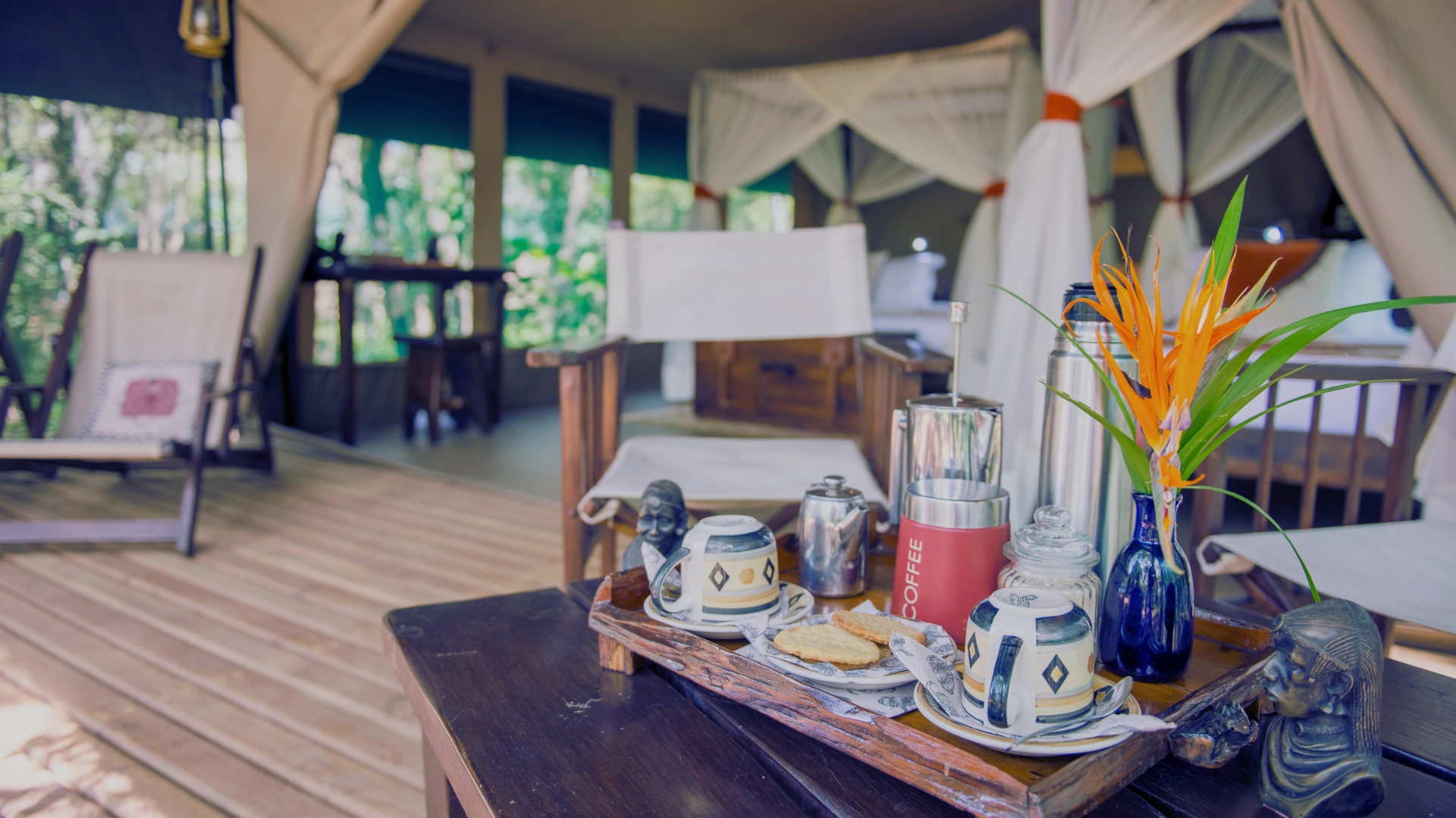 Our intimate camp combines luxury with sustainability, earning a Gold Eco Rating through responsible practices. Guests can choose from ten elegant riverside tents accommodating up to three or two family tents spacious enough for four.