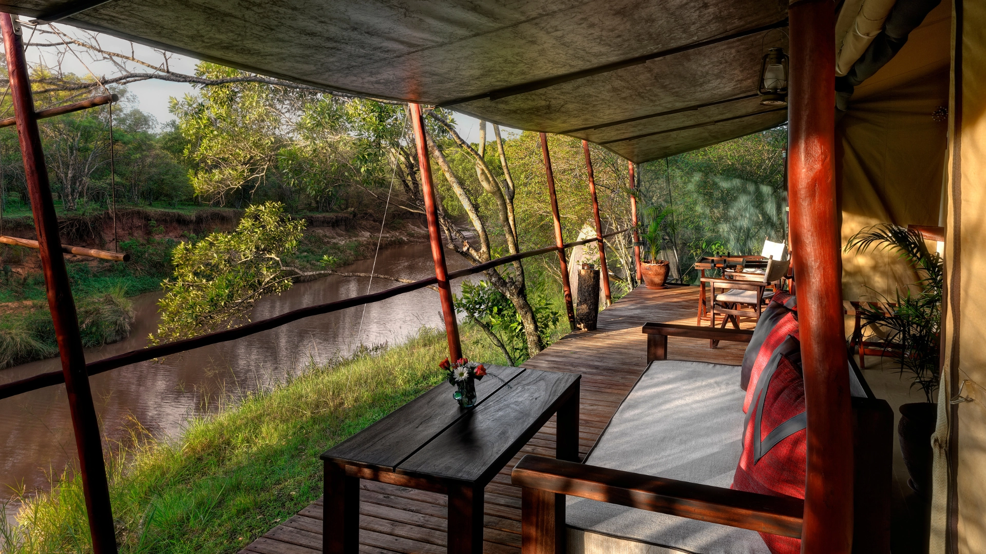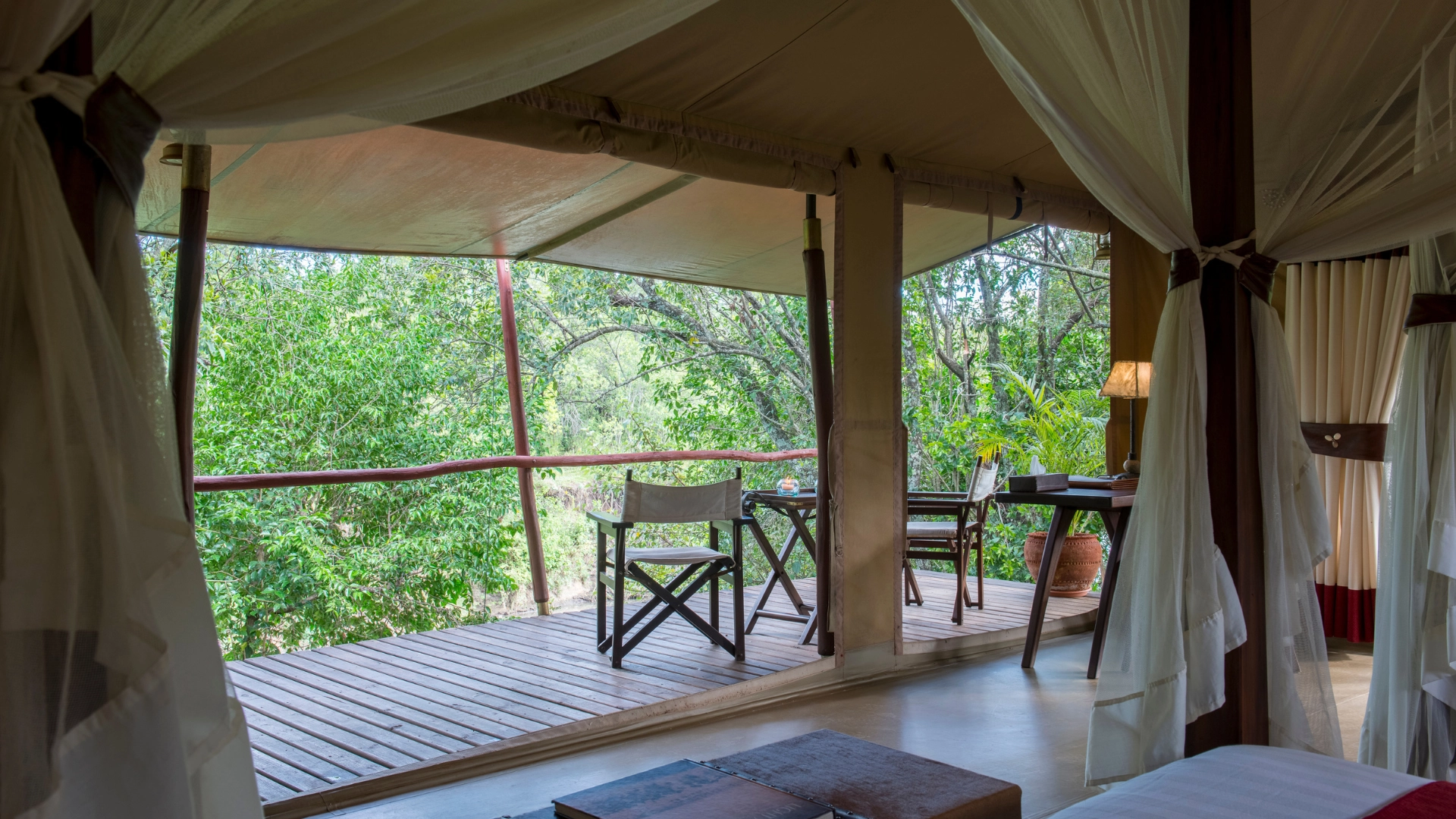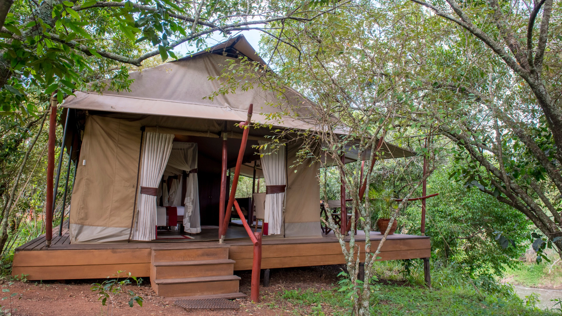 Designed for those who seek an exclusive African wildlife experience, Soroi Private Wing features 4 forest-facing tents, 6 river-facing tents, and 2 river-facing family tents. Each tent is meticulously designed with spacious interiors, mahogany furniture, and locally sourced soft furnishings, blending comfort with an authentic bush feeling. All tents have en-suite bathrooms, a mini-fridge, and a fan.