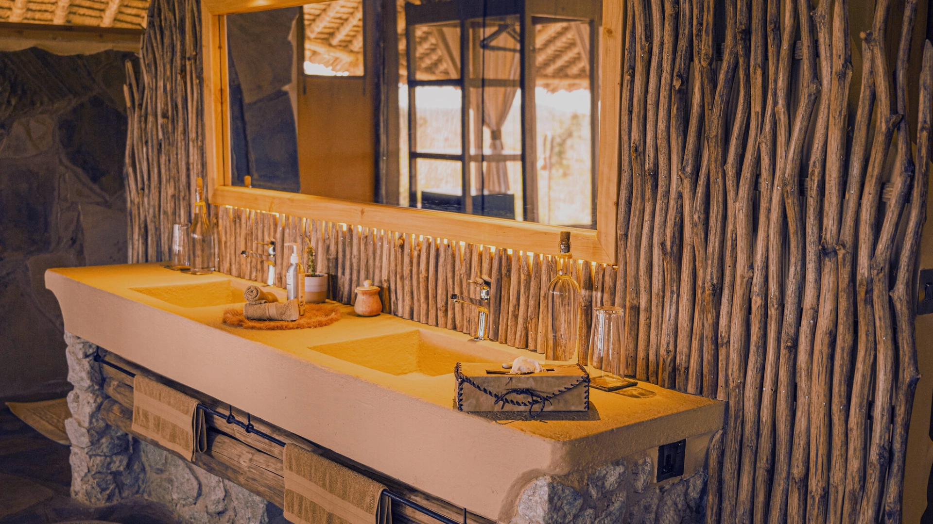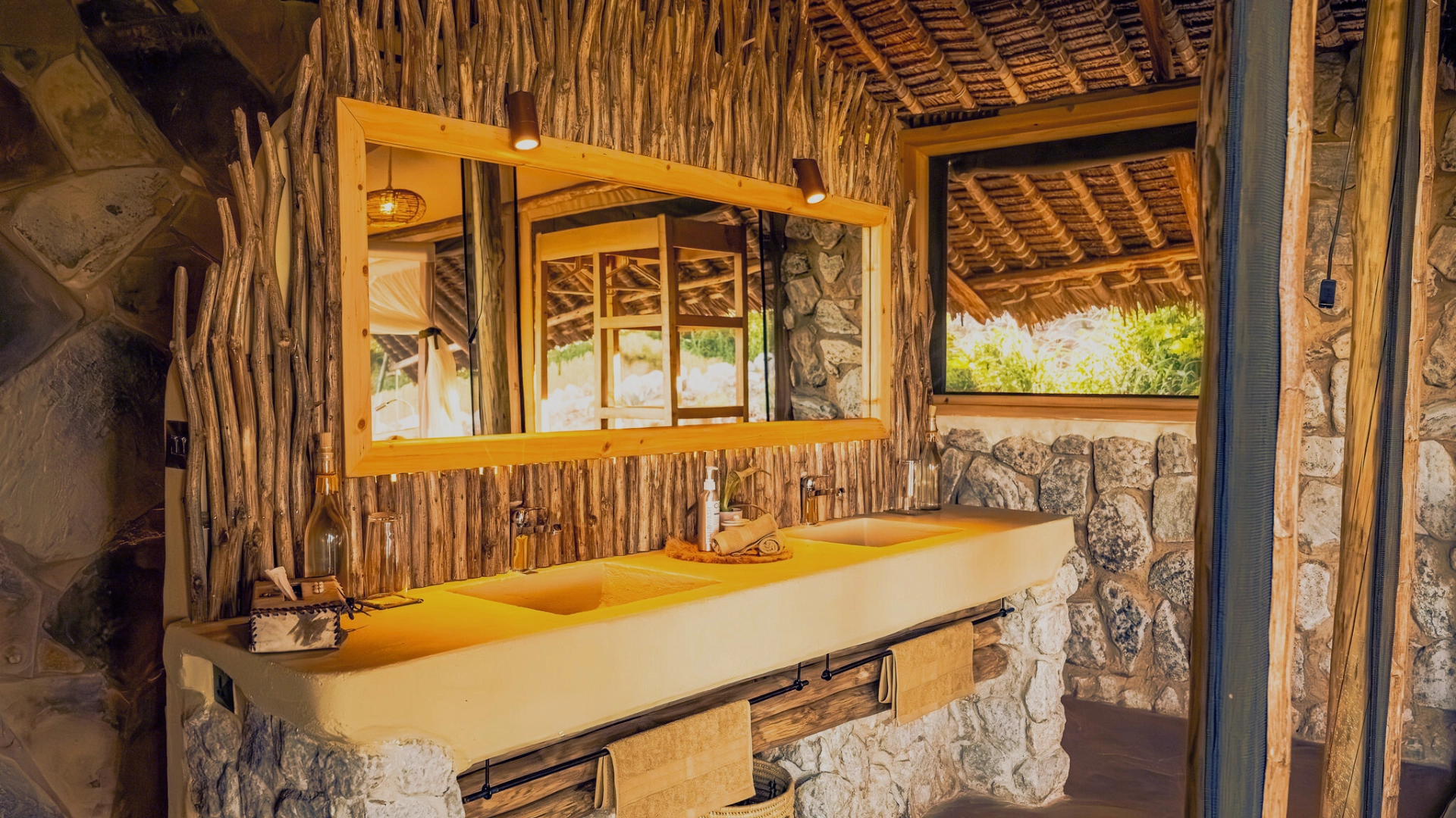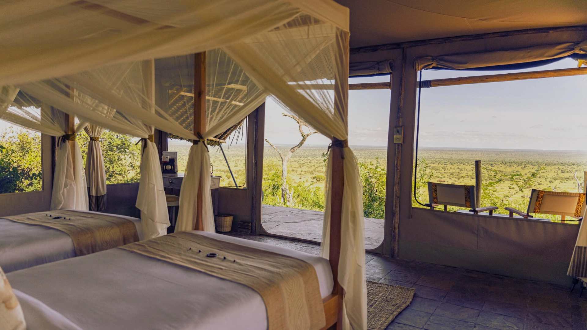 Our Twin/Double Tents provide a cozy atmosphere with stunning views of the surrounding wilderness. Each tent has twin or double beds, an en-suite bathroom with a private veranda, and bespoke organic soaps and care products. Enjoy the serene ambiance and connect with nature in comfort.